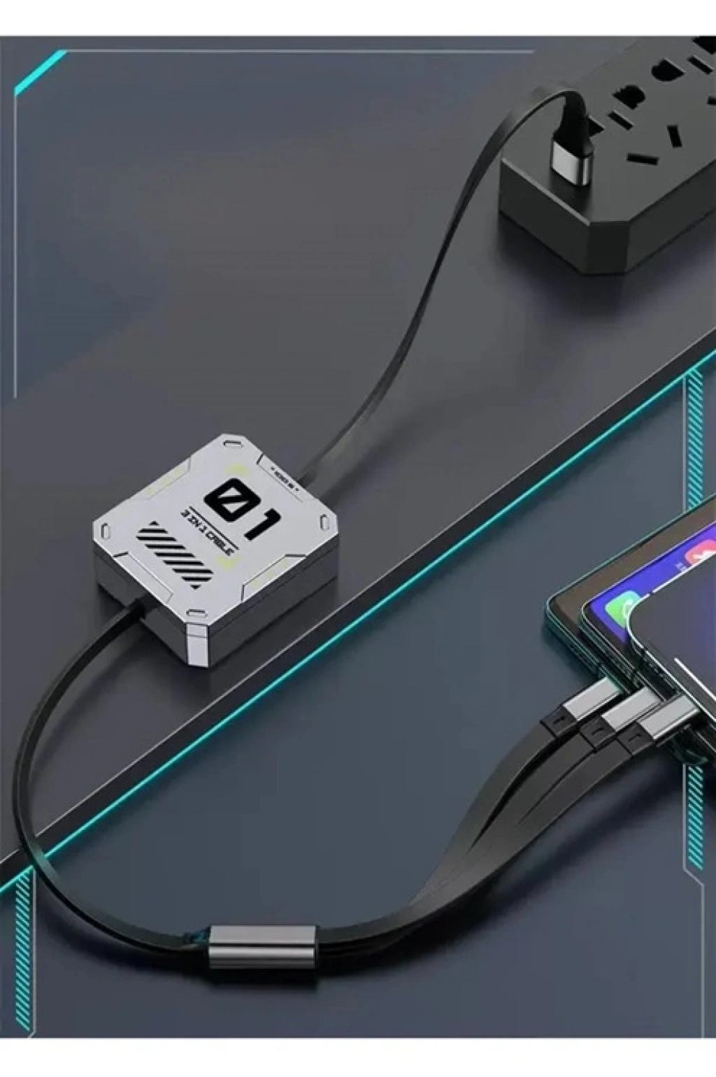100W Alüminyum Gövdeli Geri Çekilebilir 3'ü 1 Arada Şarj Kablosu