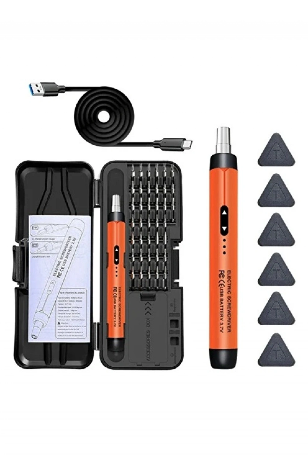 Güçlü Mikro Motor & Metal Dişli Sistem Yüksek iletkenliğe sahip bakır bobinli mikro motor Dayanıklı metal gearbox sistemi Stabil ve titreşimsiz çalışma Uzun ömürlü mekanik yapı Düşük direnç, yüksek verim 500 mAh Büyük Kapasiteli Lityum Batarya 3.7V güçlü Type-C hızlı şarj desteği Tek şarj ile yüzlerce vida sökme/takma LED şarj göstergesi Güçlü Manyetik Uç Tutucu Manyetik self-priming chuck sistemi Uçlar otomatik olarak yerine oturur Vida düşmesini önler Kolay ve hızlı uç değişimi 28mm H4 Manyetik Hassas Uç Seti Set içeriğinde yaygın tüm elektronik vida tipleri bulunur: ✔ Torx (T3-T10) ✔ (PH0000 – PH1) ✔ Düz (SL1.0 – SL4.0) ✔ Hex (H0.7 – H3.0) ✔ Y-Type ✔ U-Type ✔ Triangle ✔ Square Akıllı telefon, tablet, laptop, kamera, oyun konsolu, saat, gözlük, küçük ev aletleri ve daha fazlası için uygundur.