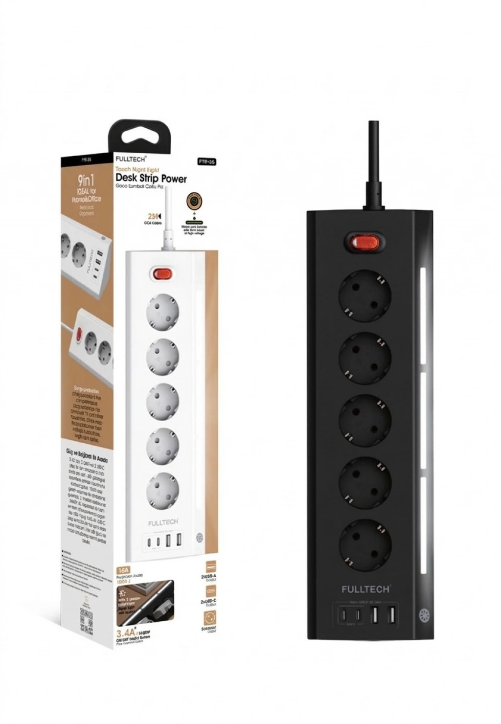 FTR-26 Akım Korumalı 5’li Priz: 2xUSB + 2xType-C ve Dokunmatik Gece Lambası