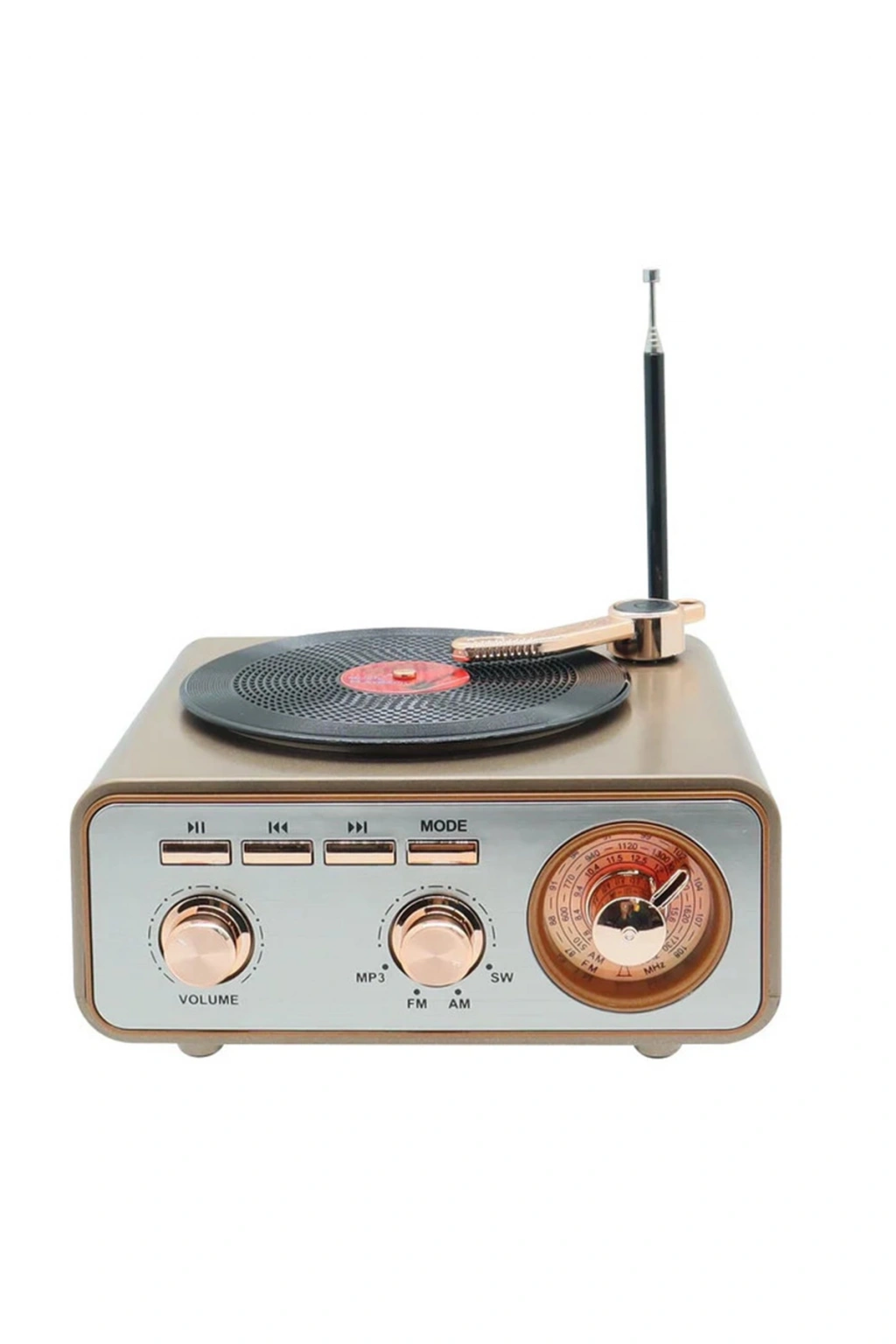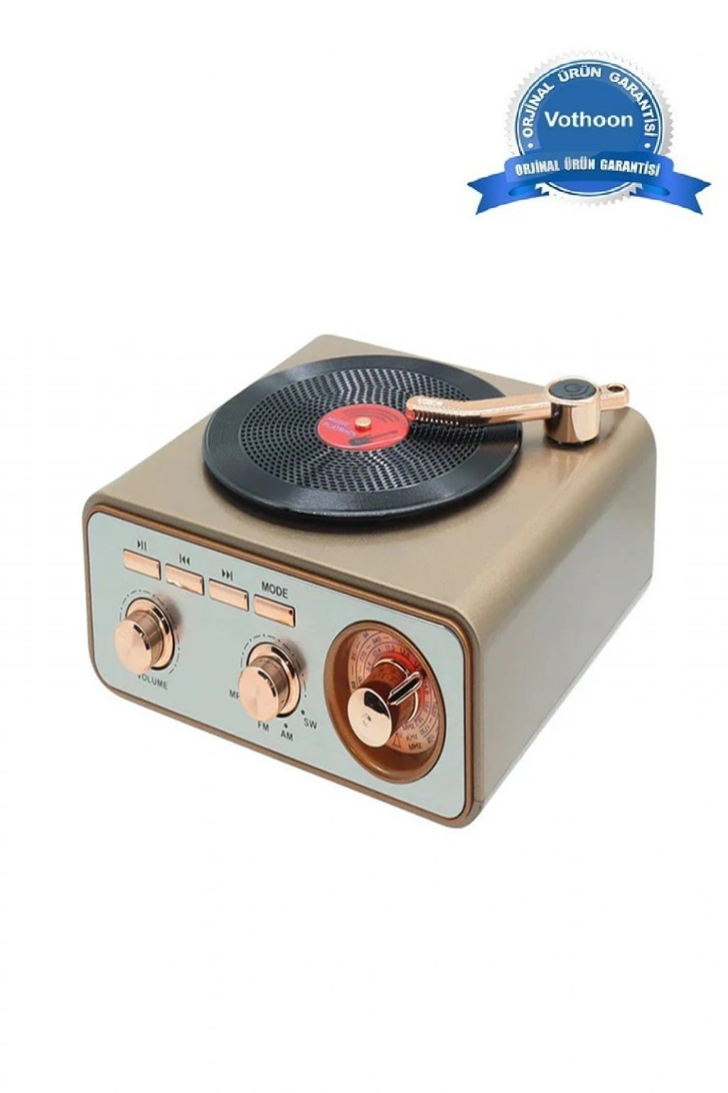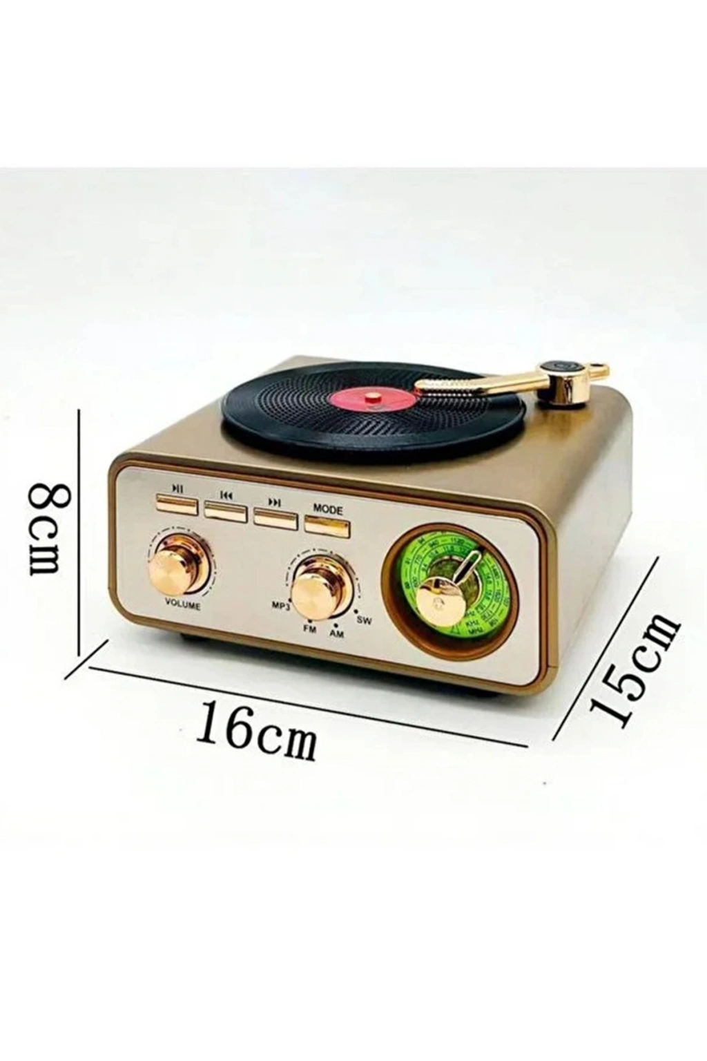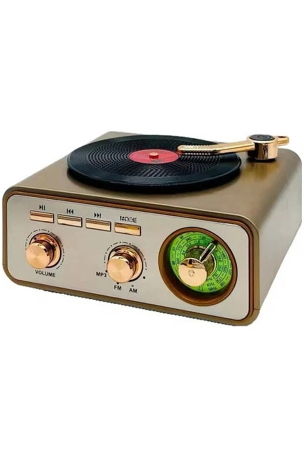 Metalik Nostaljik Tasarım Plak Çalar Görünümlü Radyolu Bluetooth Hoparlör Retro Müzik Plak