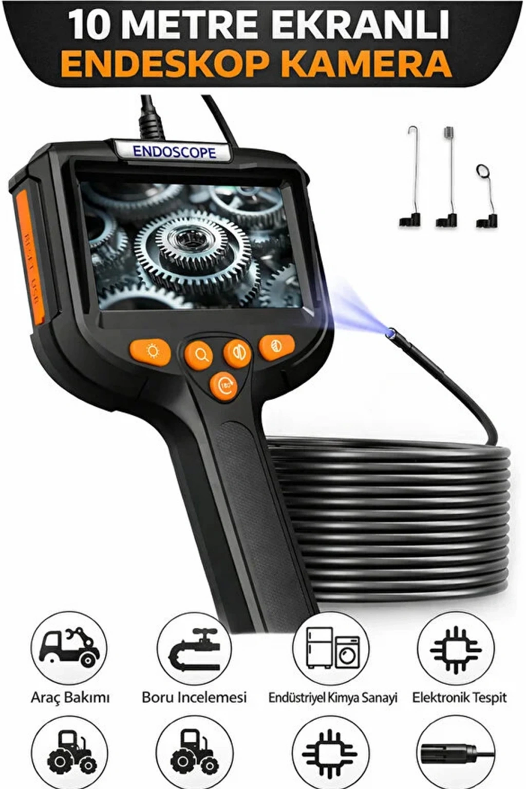 Aksesuar Kiti: Mıknatıs (Metal çekmek için),Kanca (Nesne tutmak için) ve Yan Ayna.