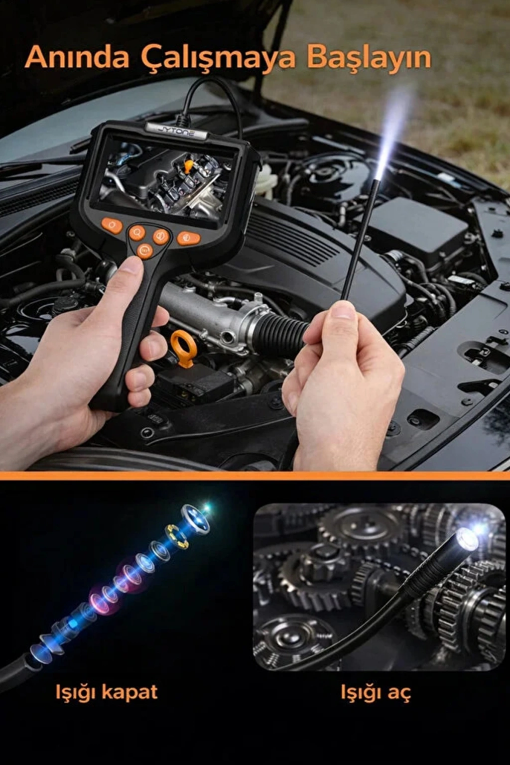 Ultra İnce 5.5mm Lens: Piyasadaki standart lenslerden çok daha ince yapısı sayesinde, en dar borulara ve motor bloklarına kolayca girer.