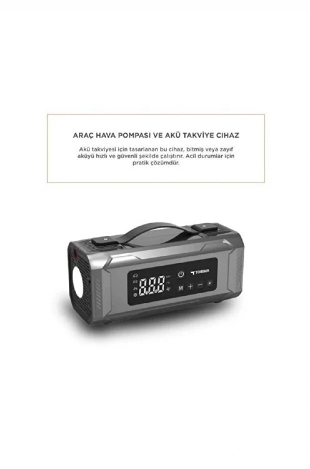 Güçlü Akü Takviye (Jump Starter): Aküsü bitmiş araçları saniyeler içinde, başka bir araca ihtiyaç duymadan çalıştırır. 10.000 mAh kapasitesiyle tek şarjda defalarca takviye yapabilir.
