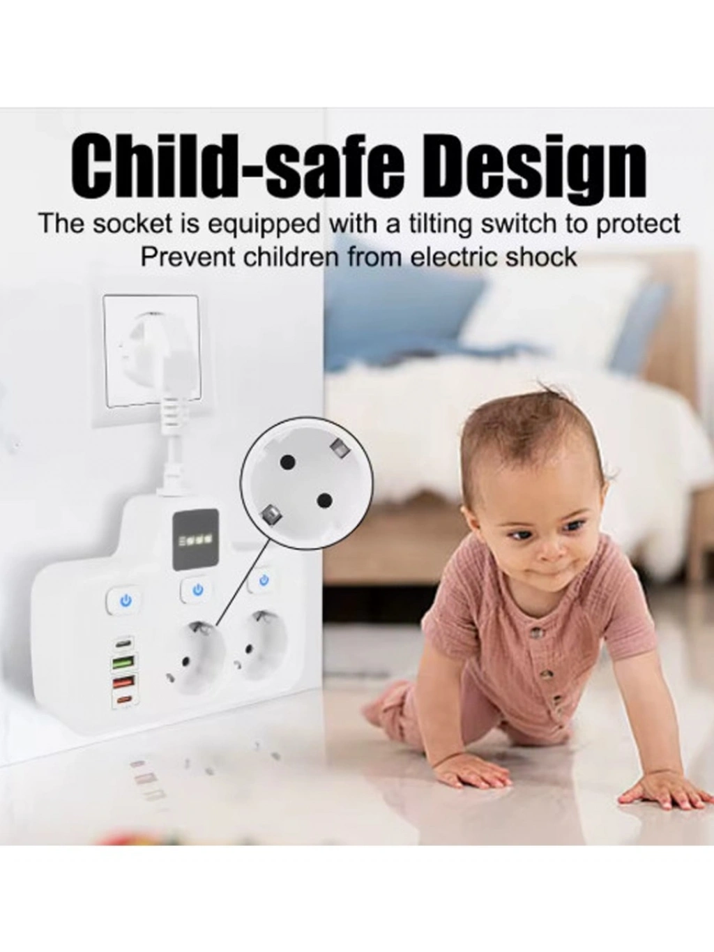 Bu duvar tipi priz, doğrudan mevcut prizinize takılarak masanızı tamamen boş bırakır.