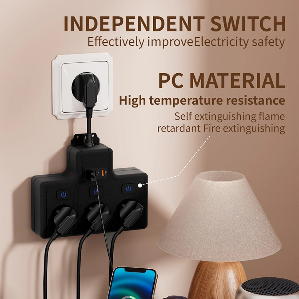 Geleneksel uzatma kabloları masanızın üzerinde kalabalık yaratır ve toz toplar. Bu duvar tipi priz, doğrudan mevcut prizinize takılarak masanızı tamamen boş bırakır. Minimalist tasarımıyla çalışma alanınıza modern bir dokunuş katar.