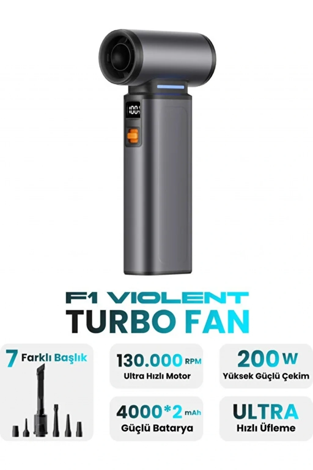 130.000 RPM Motor: Sıradan cihazların çok ötesinde bir hava akışı sağlayarak en inatçı tozları bile söküp atar.