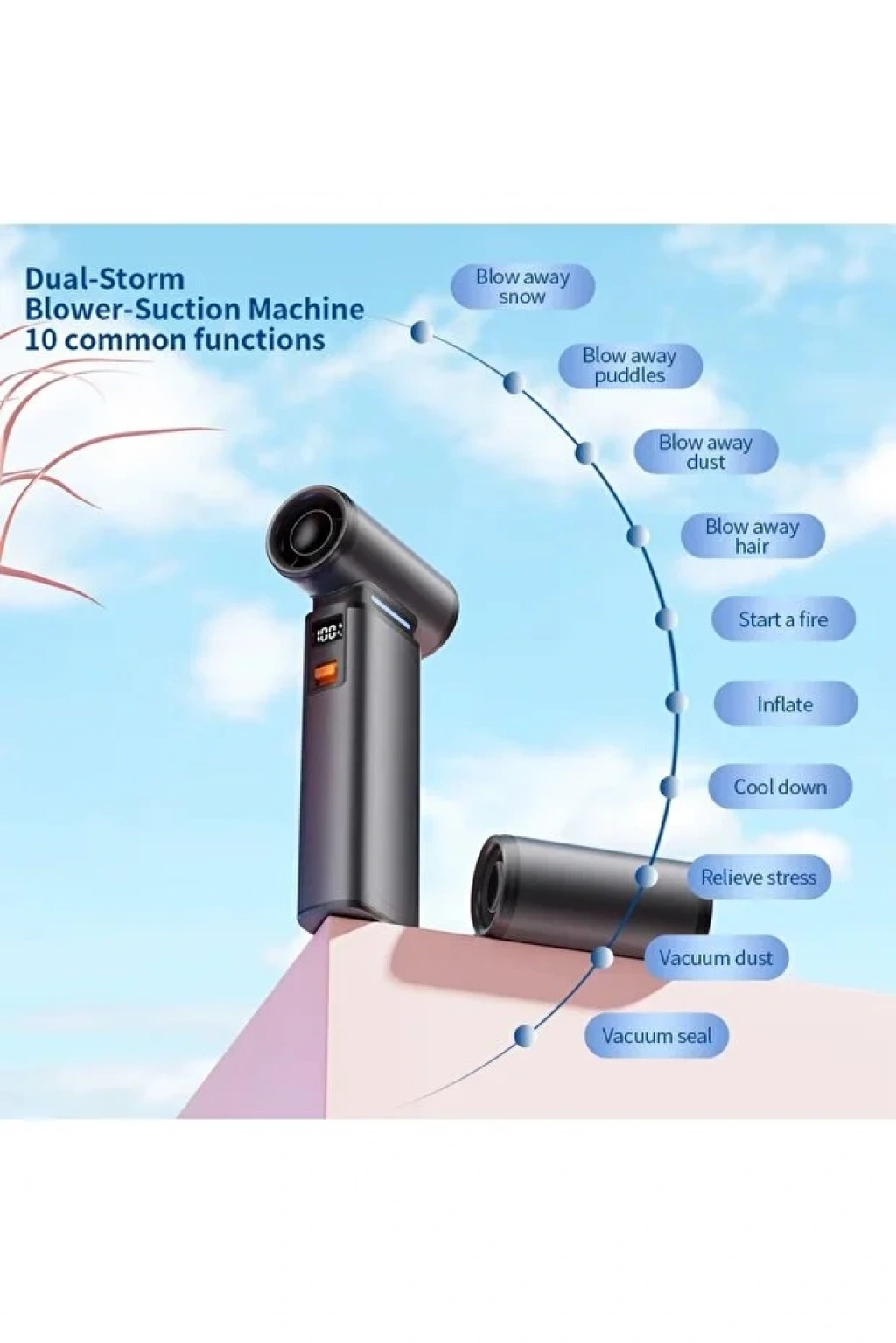 Çift Yönlü Fonksiyon: Bir tarafıyla güçlü bir vakum (süpürge), diğer tarafıyla ise basınçlı bir kompresör (üfleyici) gibi çalışır.